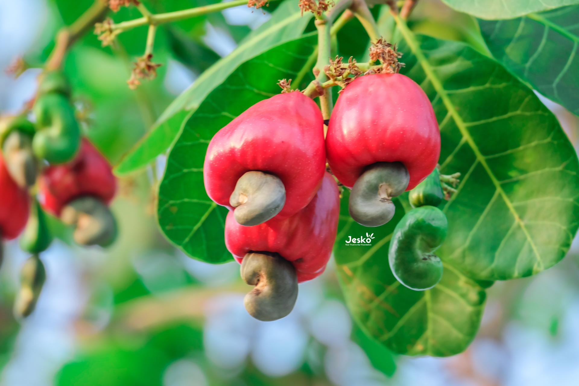 Fresh cashew apples and kernels before shelling — the natural origin of Vietnam’s cashew export industry.